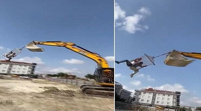 Olay, dün akşam saatlerinde Kavaklı Mahallesi'nde bulunan şantiyede yaşandı. Sıcaktan bunalan işçiler, şantiyede yatmak için kullandıkları hamak ve kepçeyle eğlenmek için farklı bir yöntem buldu. İşçiler, kepçenin ucuna bağladıkları hamağa oturdu. Makinenin başına geçen operatör kepçeyi havalandırıp, hızla döndürmeye başladı. Metrelerce yükseklikte, hızla dönen kepçenin ucunda hamağa oturan işçiler, canlarını hiçe sayarak uzun süre eğlendi. Yoldan geçen Halit Can Demirtaş da hamağa oturarak tehlikeli eğlenceye dahil oldu. Bu sırada şantiyedeki başka bir işçi, bu anları cep telefonu kamerasına kaydetti.