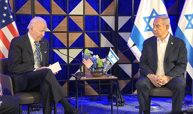 ABD Başkanı Joe Biden, İsrail temasları kapsamında Başbakan Binyamin Netanyahu ile bir araya geldi. Biden, görüşme öncesi yaptığı açıklamada, Gazze’de hastaneye düzenlenen saldırıyla ilişkin, “Gördüğüm kadarıyla bunu siz değil, diğer takım (Hamas) yapmış” dedi.