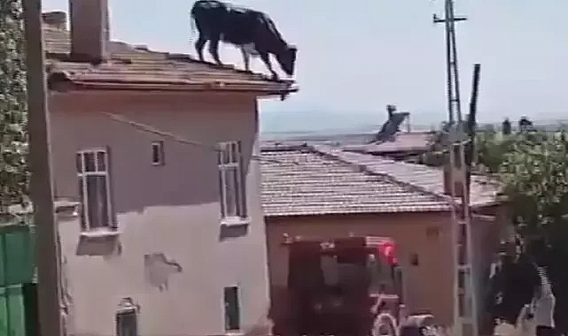 Olay, Kadınhanı ilçesi Hacı Mehmetli Mahallesinde meydana geldi. Sahiplerinin elinden kaçan kurbanlık boğa, kerpiçten yapılan tek katlı ahırın damına çıktı. Ardından bitişindeki evin çatısına çıkan boğa, çatının kenarına kadar geldi. Sahipleri evin çevresini sarıp yakalamak istediği boğa çatının diğer ucuna giderek, tekrar ahırın üstüne indi. Sahipleri bu sırada yakalamak için hamle yaptığında boğa, ahırdan üstünden atlayıp, kaçmaya devam etti. Takibi sürdüren sahipleri bir süre sonra boğayı yakalamayı başardı. Yaşanan bu anlar ise cep telefonu ile kaydedildi. (DHA)