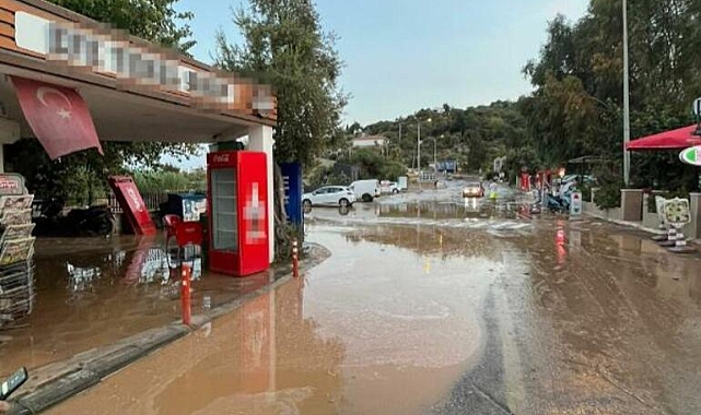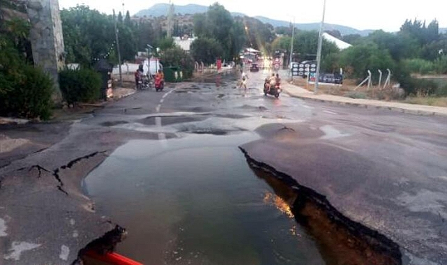 Muğla'nın Bodrum ilçesinde, ana su isale hattı patladı. Cadde ve sokaklar göle dönerken, çöken yolda çukur oluştu. Patlama anı bir iş yerinin güvenlik kamerası tarafından kaydedildi.
