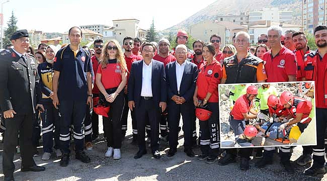 Tatbikatı, Kayseri Valisi Gökmeen Çiçek, Kayseri Büyükşehir Belediye Başkanı Dr. Memduh Büyükkılıç, İl Jandarma Komutanı Tuğgeneral Dr. Yüksel Yiğit, İl Sağlık Müdürü Dr. Mehmet Erşan, AFAD İl Müdürü Osman Atsız ve protokol üyeleri yerinde takip etti.