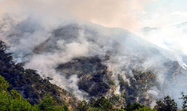 Bolu'nun Göynük ilçesinde önceki akşam yıldırım düşmesi sonucu çıkan orman yangınına havadan ve karadan müdahale sürüyor.