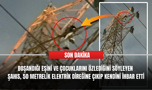 İddiaya göre, eşinden boşanan Tarık Aslan, 50 metrelik yüksek gerilim hattı direğine çıktı. Ardından Aslan, telefonuyla 112 ekiplerini arayarak ihbarda bulundu.İhbar üzerine olay yerine polis, itfaiye, sağlık ve elektrik dağıtım ekipleri sevk edildi.