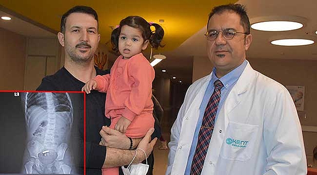 Kızı için çok korktuklarını dile getiren Ali Güler, "Bu mıknatıslar aslında ağabeyinin oyuncaklarıydı. Cemre'nin de dikkatini çekince o da oynamaya başlamış. Ağabeyi ağzına götürdüğünü fark etmiş ama yutabileceğini düşünememiş. Cemre bize yuttuğunu söyledi ama en fazla 1 tane yuttuğunu düşünüp doktora bilgi verdik. Eğer gerçekten yuttuysa dışkı yoluyla çıkmasını beklemeye başladık. Ertesi gün ağrısı başladı ve giderek artmaya devam etti. Kusmaya da başlayınca acile götürdük. Çekilen röntgende 5 tane mıknatısın olduğunu gördük. Pazartesi akşam ameliyata alındı" dedi.Çocuğunun keyifli vakit geçirmesi amacıyla aldığı mıknatısların tehlikesini, yaşadıkları olayla anladığını dile getiren Güler, ailelerin bu konuda dikkatli olması gerektiğini söyledi. BAĞIRSAK DUVARI DELİNMİŞAmeliyatı yapan Doç. Dr. Tunç Özdemir de 1 yıl içinde mıknatıs yutan 2'nci çocuk vakasıyla karşılaştıklarını belirterek bu kazaların ölümcül sonuçlara yol açabildiğine dikkati çekti. Cemre'nin bağırsağından yaklaşık 10 santimetrelik kısmı almak zorunda kaldıklarını söyleyen Özdemir, "Hastayı gördüğümde şiddetli karın ağrısı vardı, kusuyordu. Daha önceki deneyimlerim dolayısıyla çoklu mıknatıs yuttuğu için aşağı yukarı ne olduğunu tahmin ettim. Genellikle bağırsak tıkanıklığı ve bağırsak delinmesi tablosuyla karşılaşıyoruz. Aileye kısa sürede ameliyat edilmesi gerektiğini söyledik. 2,5 yaşında bir çocuk için bağırsak tıkanıklığı ve delinmesi çok ağır bir tabloya neden olur. Ameliyatta tahmin ettiğimiz gibi 4 mıknatıs bir bağırsakta, 1 mıknatıs diğer bağırsakta dururken birbirlerini birbirlerini bulmuşlar. Mıknatıslar çok güçlü olduğu için aradaki iki bağırsak duvarı zamanla eriyip mıknatısların birbirine bağlanmasına neden olmuş. Bir bağırsakta 3 delik vardı. Yaklaşık 10 santimetre kadar bağırsağı çıkarmak durumunda kaldık, diğer tarafta ise bağırsaktaki deliği onardık" açıklamalarında bulundu.ÖLÜMCÜL SONUÇ TEHLİKESİHastanın iyileşme süresinin 5 günü bulduğunu belirten Doç. Dr. Tunç Özdemir, damardan beslenip güçlü antibiyotikler verildiğini dile getirerek şu ifadeleri kullandı:"Ağızdan beslenebilir hale gelince taburcu oldu. Bir kısım bağırsağını kaybetmiş oldu. Büyük bir ameliyattı, şimdi gayet iyi. Yaklaşık 24 saat içinde bağırsak delinmiş. Aile çabuk fark etmiş, karnının içinde ciddi bir enfeksiyon ve iltihap yoktu. Bu hastanın yatışını daha da uzatırdı. Zamanında müdahale ettik, doğru ameliyatla iyileşti. Küçük bir oyuncağın yutulması veya nefes borusuna kaçması ciddi sorunlardır. Çok kısa sürede ölümcül sonuçlara yol açar. Bağırsağa kaçan yabancı cisimleri büyük bölümü çıkar ama birden fazla mıknatıs ve piller en korktuğumuz yabancı cisimlerdir. Pillerin kendisi bir tane bile olsa bağırsakta açılıp bağırsak delinmesine sebep olabilir. 1 yıl içinde 2 vaka gördük. Bu yüksek bir sayı. Sanıyorum bu oyuncak Türkiye'de piyasaya yeni çıktı. En önemli uyarımız çocuklara yaşlarına uygun oyuncaklar verilmesi."