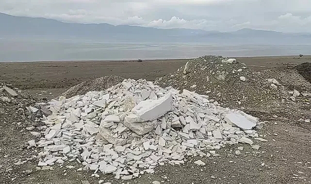 Burdur Gölü kenarına yine moloz ve atık döküldü