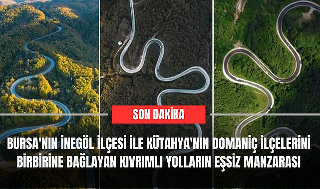Bursa'nın İnegöl ilçesi ile Kütahya'nın Domaniç ilçelerini birbirine bağlayan 'kıvrımlı yollar', mevsim renklerinin tonlarıyla sürücülere eşsiz manzara sunuyor. Domaniç Dağları'na uzanan yol, havadan dron ile görüntülendi.Bursa ile Kütahya'nın doğal sınırını oluşturan Domaniç Dağları'ndaki kıvrımlı yolların, mevsim renkleriyle oluşturduğu eşsiz manzara, havadan dron ile görüntülendi. İnegöl-Domaniç arasındaki 45 kilometrelik yolun 10 kilometresini oluşturan 'kıvrımlı yol', 1500 rakımlı Kocayayla Geçidi'ne ulaşıyor. Sürücüler ve yolcular, Kütahya'dan Bursa'ya doğru inerken Domaniç Dağları'nın etkileyici manzarasına tanık oluyor. Bulutların ve ağaçların, yolun üstüne düşen gölgeleri güzel görüntüler oluştururken, sürücüler seyahatin bitmesini istemiyor. Doğa ve fotoğraf tutkunlarının da uğrak noktası haline gelen yol, her mevsim sunduğu renk cümbüşü ile hayran bırakıyor.