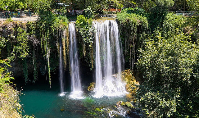 Turizm kenti Antalya'nın simge yerlerinden, Yeşilçam filmlerine de sahne olan Düden Şelalesi'nin suyu, hava sıcaklığının mevsim normallerinin 10 derece üzerinde seyrettiği bugünlerde gözle görülür derecede azaldı.Yağışın yoğun olduğu kış aylarında saniyede 94 metreküp debiyle akan su, bugünlerde 8 metreküpe kadar düştü.Antalya Büyükşehir Belediyesi de azalan su seviyesine çevre kaynaklardan su aktarımı yaparak şelaleyi beslemeye çalışıyor. Gün içinde 6 bin ziyaretçinin giriş yaptığı şelalede, ziyaretçiler mağaralarda serinleyip, şelalede fotoğraf çektirerek anı ölümsüzleştiriyor.Düden Şelalesi İşletme Sorumlusu Süleyman Yavuz, su kaynaklarındaki azalmanın dünya genelinde bir sorun olduğunu, bu sorundan Düden Şelalesi'nin de etkilendiğini söyledi.Çözüm geliştirdiklerini ve takviye kaynaklarla şelalenin debisini canlı tutmaya çalıştıklarını belirten Yavuz, “Suyun döküldüğü noktada azalma var. Gelen ziyaretçilerimizin şelaleyi görmesi için su takviyesi yapılıyor. Kışın bu durum tam tersi oluyor. Suyla ilgili sorunumuz olmuyor. Hafta sonları özellikle yoğunluk artıyor. Gün içinde 5-6 bin civarı ziyaretçimiz oluyor" dedi.