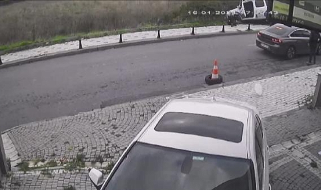 Büyükçekmece'de 'dur' ihtarına uymayarak kaçan motosikletliyi kovalayan polis aracı kaza yaptı. Polis ekiplerinin kaza yaptığı ve şüphelinin durması için havaya ateş ettiği anlar ise bir iş yerinin güvenlik kamerasına yansıdı.