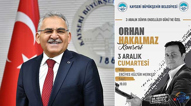 Kayseri Büyükşehir Belediyesi, 3 Aralık Dünya Engelliler Günü’ne özel ‘Orhan Hakalmaz Konseri’ düzenliyor. Büyükşehir Belediye Başkanı Dr. Memduh Büyükkılıç’ın ‘özel kardeşlerim’ diyerek ayrı bir hassasiyet gösterdiği engelli vatandaşlar, Türk Halk Müziği Sanatçısı Orhan Hakalmaz konseriyle özel günlerinin tadını çıkaracak.