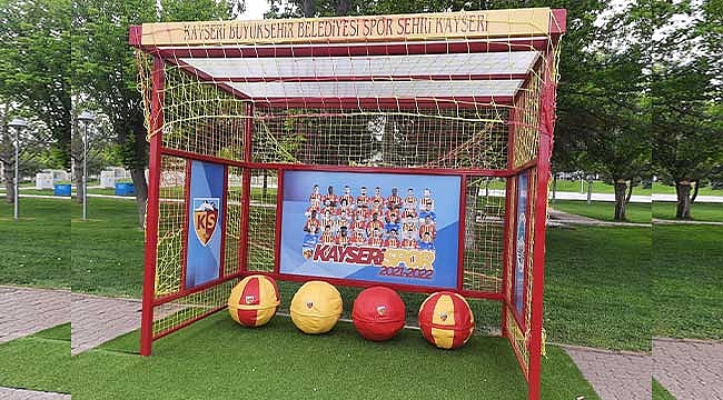 Büyükşehir Belediyesi ve Kayserispor iş birliğiyle Kayseri Kadir Has Stadyumu önündeki otobüs durağı sarı kırmızı renklerle süslendi.