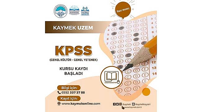Kayseri Büyükşehir Belediyesi bünyesinde faaliyet gösteren Kayseri Mesleki Eğitim ve Kültür A.Ş. (KAYMEK), Uzaktan Eğitim Merkezi (UZEM) birimi ile binlerce insana dokunan online kurs hizmetlerini aralıksız sürdürüyor. Tamamen ücretsiz sunulan kurslar kapsamında KAYMEK UZEM’in, ‘KAYMEK UZEM ile Eğitimde Uzaklar Yakın Oluyor’ slogan ile düzenlediği Kamu Personeli Seçme Sınavı (KPSS) kursu kayıtları başladı.