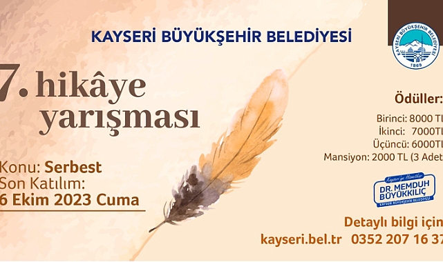 Şehrin kültür ve sanat faaliyetlerine katkı sağlayan şiir ve hikâye yarışmalarını her yıl özenle sürdüren Kayseri Büyükşehir Belediyesi, bu yıl da hikâye yarışması düzenliyor. 7’ncisi düzenlenen yarışmada dereceye giren yarışmacılardan 1’inciye 8 bin, 2’nciye 7 bin, 3’üncüye 6 bin ve 2 biner TL’lik 3 adet mansiyon ödülü ile toplam 27 bin TL’lik ödül dağıtılacak.