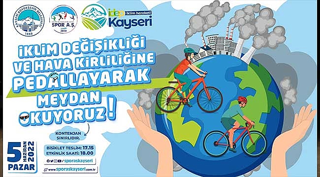 Kayseri Büyükşehir Belediyesi İklim Değişikliği ve Sıfır Atık Daire Başkanlığı ile Spor A.Ş. işbirliğinde, Dünya Çevre Günü’nde, iklim değişikliği ve hava kirliliği için farkındalık oluşturmak amacıyla 10 kilometrelik parkurda bisiklet turu düzenleyecek.