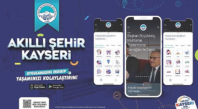 Günümüzde kullanımı her geçen daha da artan akıllı telefonlar için tasarlanmış olan ve Büyükşehir Belediyesi’nin hizmetlerinin sanal mecrada da yapılabilmesine olanak tanıyan Akıllı Şehir Kayseri Uygulaması Büyükşehir Belediyesi hizmetlerine kolayca ulaşım imkânı sağlanıyor. Bu kapsamda arama ve sesli arama fonksiyonları ile en yakın ve nöbetçi eczaneler, adreslerine kadar kullanıcıya bildirilirken, beyaz masa hizmetleri, vefat duyuruları, kültür sanat etkinlikleri, Kent Bilgi Sistemi içerisindeki adres arama, hastane, tarihi eserler, noter, ATM ve otoparklar gibi noktalara ulaşma fırsatı ile şehir kameralarına ulaşım hizmeti sunuluyor. Akıllı Şehir Kayseri Uygulaması ile ayrıca, muhtar bilgileri, projeler, haberler, imar plan değişiklikleri ve harita gibi bilgilere de kolayca ulaşılabiliyor.