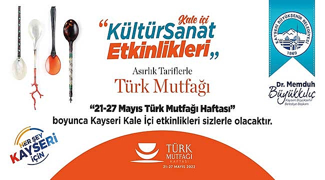 Kale İçi Kültür Sanat Etkinlikleri kapsamında “21-27 Mayıs Türk Mutfağı Haftası” boyunca tarihi Kayseri Kalesi içerisinde konserler düzenlenecek. 21 Mayıs Cumartesi günü saat 21.45’te sanatçı Süleyman Bar, 22 Mayıs Pazar günü saat 21.45’te sanatçı Namık Kemal Bilgin konser verecek.