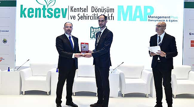 Ödülü, Büyükşehir Belediyesi adına Kentsel Dönüşüm Daire Başkanı Hakkı Alp, Çevre Şehircilik ve İklim Değişikliği Bakanlığı Kentsel Dönüşüm Genel Müdürü Vedad Gürgen’in elinden aldı.
