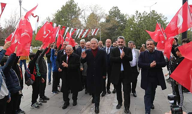 Başkan Büyükkılıç ile Akar ve beraberindeki heyet, çocuklar tarafından Türk bayrakları ile coşkuyla karşılandı.