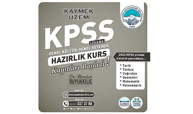 Kayseri Büyükşehir Belediyesi Kayseri Mesleki Eğitim ve Kültür A.Ş. (KAYMEK), Uzaktan Eğitim Merkezi (UZEM) bünyesinde Kamu Personel Seçme Sınavı (KPSS) Genel Kültür-Genel Yetenek kurs kayıtlarını başlattı.