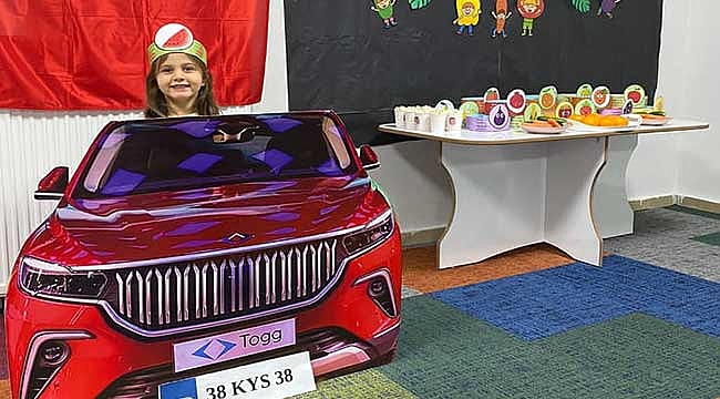 38 KYS 38 plakalı maket TOGG otomobili vurgulu olarak gerçekleştirilen 12-18 Aralık Yerli Malı Haftası etkinliğinde minikler, Türkiye’nin yerli ve milli otomobili olan TOGG’un maketi etrafında toplanarak poz verdi. Başlarına taktıkları yerli malı ürünlerin bulunduğu resimlerle süslü taçlarla da Yerli Malı Haftası’nı pekiştiren minikler, bu haftanın anlam ve önemini kavradı.