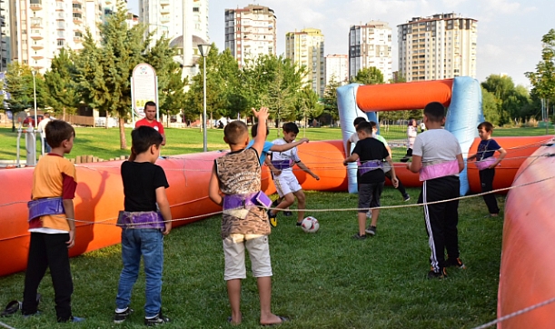 Kayseri Büyükşehir Belediyesi, bünyesindeki kurum ve kuruluşlarla halkın her türlü gereksinimlerine yanıt vermeyi sürdürüyor. Bu kapsamda ‘Spor A.Ş. Bizim Mahallede’ etkinliği ile mahallelere konuk olan Büyükşehir, çocukları adeta coşturdu.Büyükşehir Belediyesi bünyesindeki Spor A.Ş. çocukların hem sağlıklı hem de eğlenceli vakit geçirebilmeleri için gerçekleştirdiği etkinliklerini sürdürüyor. ‘Spor A.Ş. Bizim Mahallede’ etkinlikleri kapsamında Tuna Parkı’nda ve Mimsin Prof. Dr. Necmettin Erbakan Parkı’nda çocuklarla bir araya gelen Spor A.Ş. personeli, çocuklara unutulmaz anlar yaşattı.SPOR VE EĞLENCE BİR ARADASıcak havaların etkisiyle evlerine kapanan, sıkılan akşam saatlerinde ise sokağa çıkabilen çocukları için ilca niteliğinde olan, onların sıkıntısını gidermek adına Büyükşehir Spor A.Ş. tarafından ‘Spor A.Ş. Bizim Mahallede’ isimli hem spor hem de eğlence içerikli etkinlik ile çocuklar hem spor yaptı hem de gönüllerince eğlendi.VOLEYBOLDAN OKÇULUĞA, LANGIRTTAN TIRMANMA DUVARINA KADAR HER SPOR VE OYUN VARBüyükşehir Spor A.Ş. ile birbirinden farklı sportif oyun alanları ve sahne gösterileriyle eğlenceli zaman geçiren çocuklar, voleybol, okçuluk, canlı langırt, tırmanma duvarı, slot car, şişme yıkım oyunu, şişme basketbol, futbol dartı gibi spor ve oyunlarla nitelikli zaman geçirdi.