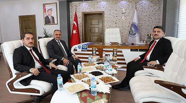 KAYSERİ(MHA)- Geçtiğimiz günlerde ilçemizde göreve başlayan Develi Kaymakamı Mehmet Tunç ve beraberinde Develi Cumhuriyet savcısı Ali Osman Avcı Belediye Başkanımız Mehmet Cabbar’ı makamında ziyaret ettiler.