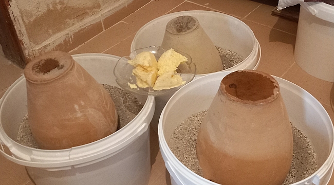 Büyükbaş hayvanların sütünden elde edilen peynirler toprak çömleklere basılıp ağzı kapatıldıktan sonra tersine kum içerisine gömülerek 5-6 ay mahzenlerde kumda bekletildikten sonra tüketici ile buluşturuluyor.