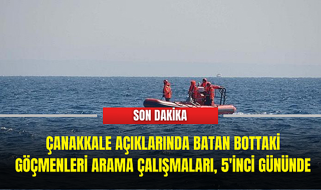 Çanakkale'nin Eceabat ilçesi açıklarında alabora olup, batan bottaki kayıp göçmenleri arama çalışmaları, 5'inci gününde de sürüyor.