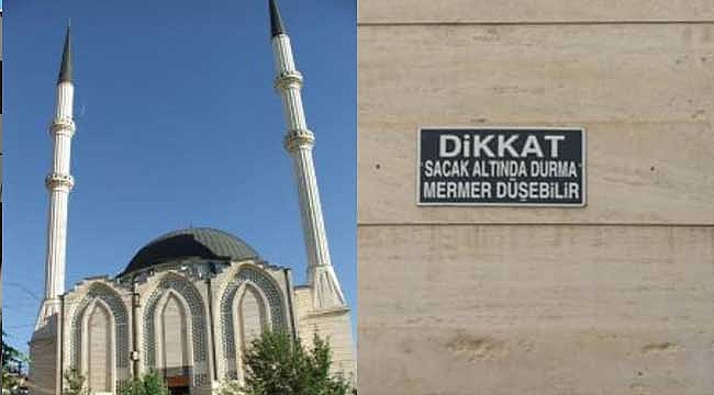 Cami yüzeyinden bir mermer bloğun 10-15 metre yükseklikten cami dibinde bulunan, cenaze namazı için gelen, demirciler sokağından geçen, ibadet için gelen bir kişi ya da kişilerin üzerine düşecek olma tehlikesi her geçen gün artmaktadır. Dün yine bir mermer plaka Cami kıblesindeki iş yeri önüne düştü. Heleki düştüğü yerde kimse yoktu.