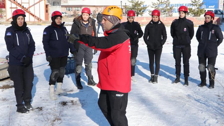Erzurum İl Afet ve Acil Durum Müdürlüğü'nün (AFAD) sahasında, CEKUT eğitmenleri tarafından 5 günlük eğitime alınan 27 kadın gönüllü, enkaza güvenli yaklaşma, arama kurtarma usulleri, sesli ve ikazlı arama, malzeme tanıtım ile kullanma konularında öğrendikleri teorik bilgileri uygulayıp, olası afetlere müdahaleye hazırlanıyor.