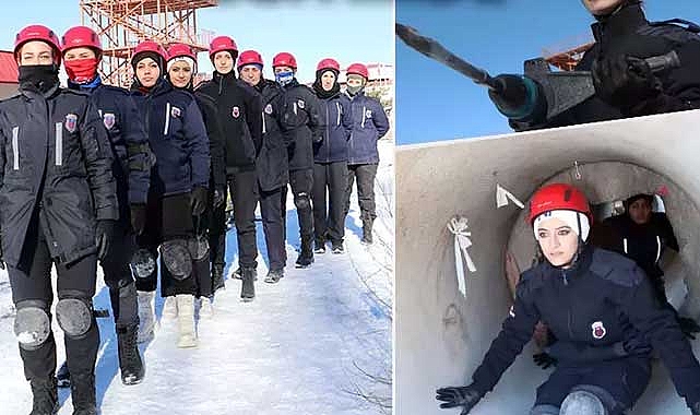 Bursa, İstanbul, Kayseri, Ankara, Çorum, Eskişehir, Yozgat, Isparta, Gaziantep, Balıkesir, Çanakkale ve Kocaeli'den eğitime katılan, ceza infaz kurumlarında görevli kadın personel, hava sıcaklığının sıfırın altında 5 derece ve karla kaplı zeminde özveriyle çalışıyor.