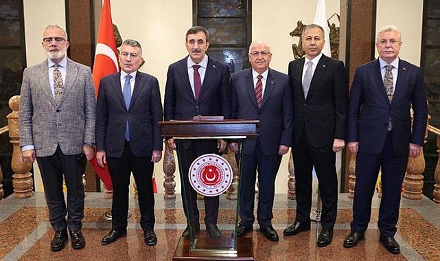 CumhurbaşkanıI Yardımcısı Cevdet Yılmaz ve beraberindekiler, Pençe- Kilit Operasyonu bölgesinde şehit olan askerler için Milli Savunma Bakanı Yaşar Güler'e taziye ziyaretinde bulundu.