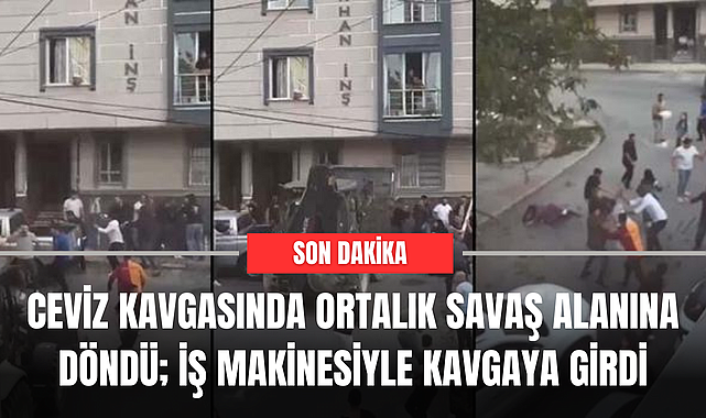 Ceviz kavgasında ortalık savaş alanına döndü; iş makinesiyle kavgaya girdi