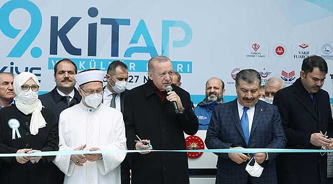 "ELİMİZDEKİ TÜM OBJELER SERGİLENECEK"Erdoğan, "Kitap fuarlarıyla birlikte bir de Büyük Çamlıca Camii'si altında müze açıyoruz. Bu müzede senede bir bazen iki kez elimizdeki tüm objeler sergilenecek. Milletimize tamamıyla bu objeler inşallah onların hizmetinde olacak. Salgın sebebiyle iki yıldır ara verilen fuarlarımızın bu yıl yeniden başlamış olmasından memnuniyet duyuyorum. Bizim medeniyetimiz yaradan Rabb'inin adıyla oku, emri üzerine bina edilmiştir. Kur'an-ı Kerim'i ruhu, lafzı ve cismiyle her şeyin üzerinde tutan bir kültürel müktesebata sahibiz" diye konuştu. ASIL GERİ KALMIŞLIĞI ZİHİNLERDE YAŞAMIŞTIK.Erdoğan, "Biraz sonra açılışını yapacağımız İslam Medeniyetleri müzesinde Kur'an-ı Kerim'in en güzel şekilde yazılışından muhafazalarına kadar pek çok sanat eseri de sergileniyor. Böyle bir medeniyetin mensuplarının kitap dostu olması kadar tabii bir durum yoktur. Tarihimizde 50-60 yıllık hayatlarına 500'e yakın eser sığdıran bunlardan günümüze kalanlarını dahi hakkıyla okuyup hıfzetmenin bir ömre bedel olduğu Gazali gibi, İbni Sina gibi abidevi isimler vardır. En büyük vasfı fetihler yapmak devletler kurmak olan ecdadın kalem kılıçtan keskindir sözü okumaya ve yazmaya verdiği öneme işaret eder. Ülke ve millet olarak beka mücadelesi yürüttüğümüz asırlarda sadece topraklarımızı sadece kardeşlerimizi geride bırakmakla kalmadık. Aynı zamanda kültürel bir çoraklıkla da karşı karşıya kaldık. Uzunca bir süre devam eden Türkiye'nin geri kalmışlığı, sadece insanlarımızın günlük hayatlarındaki yokluklar, yoksulluklar, eksiklerle ilgili değildi. Asıl geri kalmışlığı zihinlerde yaşamıştık. İnsanların kılıklarına, kıyafetlerine, ibadetlerine, konuşmalarına, oturmalarına, kalkmalarına takılıp kalanlar milletimizin aklı selim, zevki selim, kalbi selim gibi bizi biz yapan asıl mirasına sırt dönmüştür. Ülkemizin son yirmi yılda gerçekleştirdiği büyük demokrasi ve kalkınma atılımının en güzel, en hayırlı neticelerinden biri milletimizin diğer alanlarla birlikte okuma, yazma, üretme konusunda da önünü açmış olmasıdır." dedi."İKİ KATINDAN FAZLA ARTTI"Erdoğan şöyle devam etti:"Türkiye kitap üretimi ve sektörün büyüklüğü bakımından uluslararası yayıncılar birliği içinde ilk 10'da yer alan bir yere gelmiştir. 2000 yılında ISBN numarası verilen kitap sayısı 9 bini bile bulmazken bu rakam geçtiğimiz yıl 87 binin üzerine çıkmıştır. Önde gelen araştırma şirketlerimizin yaptıkları çalışmalar, okuma oranının son 14 yılda yılda iki katından fazla arttığını göstermektedir. Bu artışın en çok da gençlerimiz arasında yaşanıyor olması geleceğimiz adına bize ümit vermektedir"Açılış töreninde Erdoğan'a Kültür ve Turizm Bakanı Mehmet Nuri Ersoy, Sağlık Bakanı Fahrettin Koca, Sanayi ve Teknoloji Bakanı Mustafa Varank, Milli Savunma Bakanı Hulusi Akar, Çevre, Şehircilik ve İklim Değişikliği Bakanı Murat Kurum, Diyanet İşleri Başkanı Ali Erbaş, İletişim Başkanı Fahrettin Altun eşlik etti. Kurdele kesiminin ardından Erdoğan, müze açılışına geçti.