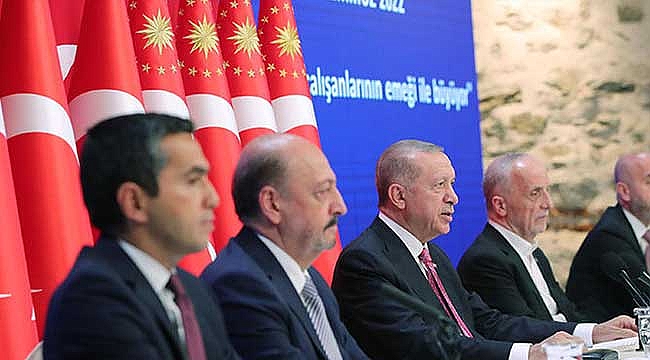 Cumhurbaşkanı Recep Tayyip Erdoğan, Beşiktaş'ta bulunan Dolmabahçe Çalışma Ofisi'nde düzenlenen basın toplantısında yeni asgari ücreti açıkladı. "ENFLASYON SADECE ÜLKEMİZİN DEĞİL TÜM DÜNYANIN EN ÖNCELİKLİ SORUNUDUR"Cumhurbaşkanı Erdoğan, "Bilindiği gibi Türkiye bir süredir maruz kaldığı ekonomik tuzaklara karşı kendi geliştirdiği yeni bir programı uygulamaktadır. Bu programı başarıyla yürütürken önce koronavirüs salgınının ardından Rusya, Ukrayna savaşının bozduğu küresel ekonomik dengeler sebebiyle yeni bir durumla karşı karşıya geldik. Yeni durumun en son olumsuz sonuçlarını kurdaki ve enflasyondaki yükseliş olarak yaşadık. Esasen enflasyon sadece ülkemizin değil gelişmiş devletler başta olmak üzere tüm dünyanın en öncelikli sorunudur. Bizim kendi gerçeklerimiz ve alışkanlıklarımız sebebiyle ülkemizde enflasyon rakamları elbette farklı tezahür etmektedir. Ancak fiyat artışlarının oranları değişik olsa da ekonomik işleyişe ve insanların hayatlarına olan etkisi aynıdır. Bu anlayışla dünyadaki her gelişmeyi yakından takip ederken asıl dikkatimizi ve önceliğimizi kendi vatandaşlarımızın sorunlarının çözümüne verdik, veriyoruz. Yaklaşık dört yıldır uyguladığımız ekonomik programın da önceliğimiz hep insanlarımızın işlerinin başlarının huzurlarının umutlarının korunması ve geliştirilmesi olmuştur. Bunu da bir yandan ülkemizi terör örgütlerinin tasallutundan kalıcı şekilde kurtararak diğer yandan da yatırım, istihdam, üretim, ihracat ve cari fazla yoluyla büyüme esasına dayalı Türkiye Ekonomi Programı ile yapıyoruz" dedi. "VATANDAŞLARIMIZIN GÜNLÜK HAYATLARINDA YAŞADIĞI SIKINTILARI ASLA GÖRMEZDEN GELMEDİK"Hamdolsun terörle mücadelede çok iyi bir seviyeye geldik ifadelerini kullanan Erdoğan, "Ekonomi programımızı da kararlılıkla uygulayarak ülkemizi bu küresel fırtınadan en az kayıp ve en fazla kazanımla çıkartmanın gayreti içindeyiz. Salgın döneminde bu yaklaşımın faydalarını kendimizi dünyadan pozitif yönde ayrıştırarak gördük. Küresel üretim ve tedarik zincirlerinin çöktüğü bir dönemde Türkiye hem kendi ihtiyacını karşılayan hem de ihracatıyla elindeki imkanları herkesle paylaşan bir ülke olarak öne çıkmıştır. Karadeniz'in kuzeyindeki savaşın başından beri de tüm taraflarla diyaloğu, iş birliğini, barışa katkı vermeyi hedefleyen politikamızla ülkemizi bu büyük güvenlik krizinden de yine pozitif yönde ayrıştırmayı başardık. Tabi tüm bunları yaparken vatandaşlarımızın günlük hayatlarında fahiş fiyat artışları ve enflasyon sebebiyle yaşadığı sıkıntıları asla görmezden gelmedik. Çalışanlarımız başta olmak üzere her bir insanımızın refah kaybını telafi edecek pek çok tedbiri devreye aldık, almaya devam ediyoruz. En başta her alanda üretimi destekleyerek, çarkların durmasına, istihdamın gerilemesine müsaade etmedik. İstihdamın 30,5 milyona yaklaşması, ihracatın yıllık 250 milyar dolar eşiğine gelmesi bu çabalarımızın ürünüdür" diye konuştu. "YÜKÜN TAMAMINI İŞVERENİN ÜSTÜNE YIKMADIK"Erdoğan sözlerini şöyle sürdürdü: "Sosyal destek programlarımızın hem kapsamını genişletmek hem miktarını arttırmak suretiyle hiç kimseyi yalnız çaresiz, sahipsiz bırakmadık. Engellisinden yaşlısına, kimsesizinden ihtiyaç sahibine kadar tüm dezavantajlı kesimlerin üzerine titriyor, hepsine gözümüz gibi bakıyoruz. Bir diğer tedbirimiz çalışanları sadece enflasyona ezdirmemekle kalmayıp hayat pahalılığı karşısında daha güçlü bir şekilde desteklemektir. Bu amaçla yılbaşında hem asgari ücretle hem memur maaşlarında, hem emekli maaşlarında çok ciddi artışlar yapmıştık. Asgari ücret tespit komisyonumuzun takdire şayan çabalarıyla emekçilerimizin ücretlerinde yüzde 50 gibi tarihi bir artışı gerçekleştirmiştik. Tabi asgari ücreti yükseltirken yapılan artışın getirdiği yükün tamamını da işverenin üstüne yıkmadık. Devlet olarak çok ciddi bir fedakarlıkta bulunarak asgari ücret yanında tüm maaşların asgari ücret kadarki kısmından aldığımız vergilerden sarfı nazar ettik. Ancak geçtiğimiz aralık, ocak aylarının enflasyonda yol açtığı kamburun bu artışların bir süre sonra yetersiz kalmasına sebep olduğunu da tespit ettik. Bunun üzerine arkadaşlarımızdan hemen gereken hazırlıkları yapmaya başlamalarını istedik. Kamu çalışanlarımızın ve tüm emeklilerimizin maaşlarına yüzde 40'ın üzerinde bir enflasyon farkı artışı zaten yapılacak.""YENİ ASGARİ ÜCRET NET 5 BİN 500 LİRA OLACAKTIR"Erdoğan, "Asgari ücretlilerimizin de kayıtlarını telafi etmek gerektiğini gördük. Çalışma ve Sosyal Güvenlik Bakanlığımız talimatımızla hemen asgari ücret komisyonunu toplantıya çağırdı. Bakanlığımızın tüm taraflarla görüş ve anlayış birliği içinde yürüttüğü çalışma sonunda yeni bir asgari ücret rakamı belirledik. Şimdi sizlere yeni asgari ücreti açıklamak istiyorum. Evet asgari ücrete temmuz ayından geçerli olmak üzere yüzde 30 oranında bir ara artış yapıyoruz. Buna göre yeni asgari ücret net 5 bin 500 lira olacaktır. İşçi başına devletimiz işverenlere 100 lira destek verecektir. Yeni asgari ücretin tüm çalışanlarımıza ve geliri buna endeksli tüm kesimlere hayırlı olmasını diliyorum. Biraz önce de vurguladığım gibi bu bir ara artıştır. Asıl asgari ücret tespitinin inşallah yılbaşında yeniden gerçekleştireceğiz. Diğer yandan yılbaşında devreye aldığımız asgari ücret kadarki gelirin vergi dışı kalması uygulaması sebebiyle kamu çalışanlarına ve emeklilere bu artış ortalama 300 lira olarak yansıyacaktır. Bu artışın da faydalanacak herkese hayırlı olmasını temenni ediyorum. İn