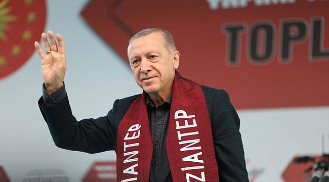 Miting alanında resmi rakamlara göre 60 bin kişinin bulunduğunu dile getiren Cumhurbaşkanı Erdoğan, "Bizim düşüncemiz hep milletten yanadır, vatandan yanadır. Bunun için 20 yıldır, gece gündüz ülkemize eser vermek, milletimize hizmet etmek için çalışıyoruz. Ülkemize 20 yılda asırlık eser ve hizmetler kazandırırken attığımız her adımda, girdiğimiz her mücadelede, verdiğimiz her kavgada yanımızda milletimiz vardı, yanımızda Gaziantep vardı. Sordum; şu anda meydanda resmi rakamlara göre 60 bin kişi bulunuyor ve gelişler devam ediyor denildi. Biz vesayetin oyunlarını işte sizlerle beraber bozduk. Terör örgütlerinin kanlı saldırılarını sizlerle beraber göğüsledik. Sınırlarımız boyunca kurulmaya çalışılan terör koridorlarını beraber yıktık. Darbecilere karşı beraber direndik. Ekonomik tetikçilerin tuzaklarını emeğimizle, üretimimizle, alın terimizle beraber boşa çıkardık. Türkiye yüzyılı için gereken temeli beraber attık" diye konuştu.