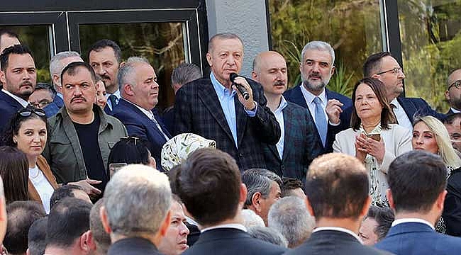 Erdoğan, ziyaret sonrası belediye önünde toplananlara hitap etti. Erdoğan, "Yola çıkarken bizim eğitim, sağlık, adalet, emniyet, enerji, ulaşım, tarım, bütün bu alanlarda çok büyük sözümüz vardı ve hamdolsun bu sözlerimizi büyük ölçüde yerine getirdik. Sağlıkta, hastanelerimizde attığımız adımlarla, eğitimde attığımız adımlarla Türkiye'de 76 üniversitemiz varken şu anda 207 üniversitemiz var. Üniversitemizin olmadığı ilimiz yok. 81 vilayetin tamamında artık üniversitemiz var. Yani benim Iğdır'daki kardeşim, Hakkari'deki kardeşim, Muş'taki kardeşim, çocuğunu üniversiteye göndermek için İstanbul'a, Ankara'ya değil. Artık Muş'ta üniversite var. Iğdır'da üniversite var. Artık oradaki üniversitelerde çocuklarını okutma şansı var" diye konuştu. "İSTİYORUZ Kİ ÇATALCA ŞANINA YAKIŞIR BİR HALE GELSİN"Erdoğan," Çatalca'yı değerlendireceğimiz zaman Çatalca'da da yine altyapı, üstyapıda birçok adımlar attık. Sizler de bunu karşılıksız bırakmadınız. Mesut kardeşimizi Çatalca'ya Belediye başkanı yapmak suretiyle yeni bir dönemi başlattınız. İnşallah birçok adımlardan sonra altyapıyla beraber şu anda bu yaz inşallah karayollarıyla birlikte burada çok ciddi bir asfaltlama çalışmasına Mesut kardeşimiz gelecek ve ulaştırma bakanım Adil Bey de bugün yanımda. Birlikte yapacakları çalışmalarla artık böyle çukur, çamur vesaire olan bir Çatalca olmayacak. Bu Çatalca'yı da daha güzel bir hale yollarıyla getirmiş olacağız. Şu anda Ulaştırma Bakanım gerekli bu noktada teminatı verdi ve belediye başkanım da araç gereci temin ederek müşterek bir çalışmayla inşallah Çatalcamızın altyapısını da üst yapısını da bu nokta da gerçekleştirmiş olacaklar. Ve istiyoruz ki Çatalca şanına yakışır bir hale gelsin" ifadelerini kullandı.Erdoğan sözlerini şöyle sürdürdü: "Biliyorsunuz Tokat'ta bir mandadan bahsettik. Şimdi manda kalmadı neredeyse. Meğerse Çatalca bu işte de çok mahirmiş. Manda kaymağı, manda sütü. Bunlar Çatalca'da bayağı ileriymiş, adeta marka. Temennimiz odur ki yani lider bir şeyi söylediği zaman arkadan bu işin takibi başlar. Takibi başladığı anda da millet artık bu noktada gücü, kuvveti toplar. İnşallah Çatalcamız bundan sonra altyapısıyla, üst yapısıyla çok daha farklı bir gücü yakalayacak. Biz her zaman Çatalca'nın yanında olmaya devam edeceğiz".