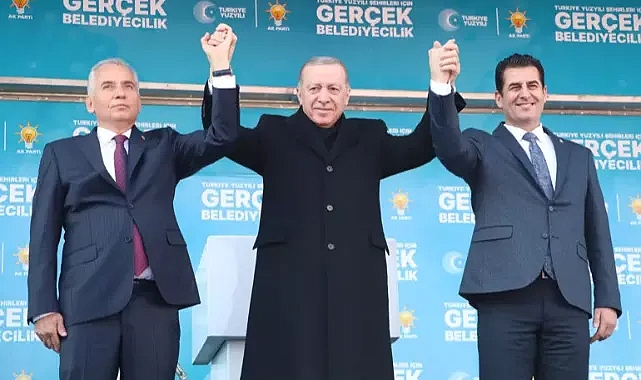 Cumhurbaşkanı ve AK Parti Genel Başkanı Recep Tayyip Erdoğan, seçim programı kapsamında Denizli'de AK Parti'nin aday tanıtım toplantısına katıldı. 29 Ekim Bulvarı Özay Gönlüm Meydanı'nda toplanan kalabalığa hitap eden Erdoğan, Denizli'de bulunmaktan duyduğu memnuniyeti dile getirip, Özay Gönlüm'ün 'Asmam Çardaktan' türküsünden 'Asmam yıkıldı, suyu sıkıldı. Bugün koca kızı görmedim, canım sıkıldı' dizeleriyle sözlerini sürdürerek, "Denizli'ye gelip sizlerle kucaklaşmayınca bizim de canımız sıkılıyor" dedi. Erdoğan, 10 aylık hasretin ardından bugün Denizlilerle beraber olduğunu belirtip, 'Mayıs ayındaki seçimlerde Cumhur İttifakı'na; cumhurbaşkanlığında yüzde 44, milletvekilliğinde yüzde 45 oy oranıyla destek verdiniz. Ama bu oy oranlarının aramızdaki muhabbetin seviyesini yansıtmadığına inanıyorum. Denizli'de en az yüzde 50'nin üzerinde oy bekliyoruz. Buna var mıyız? İnşallah 31 Mart'ta bu hedefe ulaşacağız. Eksiklerimizi tamamlayacağız. Mesajlarımızı ulaştıramadığımız insanlarımız varsa bir yolunu bulup, mutlaka onlara ulaşacağız. Ülkemize dair hayal ve hedeflerimizi anlatmaya devam edeceğiz. Cumhur İttifakı'na gönül verenler olarak CHP başta olmak üzere muhalefetten umudunu kesen insanlarımızı da muhabbetle bağrımıza basacağız. Daha fazla koşarak Denizli'de hak ettiğimiz yere mutlaka geleceğiz. Denizli'nin de 'Türkiye Yüzyılı' mücadelesinde bizi yalnız bırakmayacağı kanaatindeyim. Ülkemizi 21 yılda nasıl asırlık demokrasi ve kalkınma atılımlarıyla buluşturduysak, inşallah 'Türkiye Yüzyılı'nın inşası da bize nasip olacak" dedi.