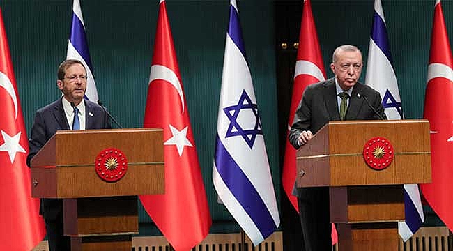 'İKİ DEVLETLİ ÇÖZÜME VERDİĞİMİZ ÖNEMİ İFADE ETTİM'Görüşmenin temel unsurlarından birisinin Filistin meselesi olduğunu belirten Erdoğan, "Sayın Hertzog'la konuya dair yaklaşımınızı ve hassasiyetlerimizi açıkça paylaştım. Bölgede gerginliğin azaltılmasına ve iki devletli çözüm vizyonunun muhafazasına verdiğimiz önemi ifade ettim. Kudüs'ün tarihi statüsü ile Mescid-i Aksa dini kimliği ve kutsiyetinin korunmasına atfettiğimiz önemin altını çizdim. Filistinlilerin sosyal ve ekonomik şartlarının iyileştirilmesinin ehemmiyetine dikkat çektim. Filistin halkına yönelik insani projeler yürüten TİKA ve Türk Kızılay gibi kuruluşlarımızın faaliyetlerinin devam etmesi hususunda İsrail makamlarının desteğini beklediğimizi özellikle vurguladım. Antisemitizmin bir insanlık suçu olduğu yönündeki yaklaşımınızı bir kez daha tekrarladım. Türkler ve Museviler yüzyıllar boyunca barış içinde bir arada yaşamanın en güzel örneklerini vermişlerdir. Bu müstesna tarihimize gölge düşürülmesine müsaade etmeyeceğiz. Koranavirüs salgınıyla beraber, dünyada nefret suçlarının yeniden arttığını görüyoruz. Antisemitizm, İslam düşmanlığı, yabancı karşıtlığı ve ırkçılıkla mücadele konusunda kararlı ve ilkeli tutumumuzu sürdürmeye devam edeceğiz" dedi.'İŞ BİRLİĞİNİ YENİDEN HAYATA GEÇİRMEK İÇİN FIRSAT'Ukrayna ve Doğu Akdeniz başta olmak üzere, güncel ve bölgesel ile uluslararası meseleler hakkında da fikir alışverişinde bulunduklarını söyleyen Erdoğan, "Önümüzdeki dönemin ikili ilişkilerimizin yanı sıra bölgesel iş birliği açısından da yeni fırsatları beraberinde getireceğine inanıyorum. Özellikle Dışişleri Bakanımızın hemen bu ziyaretin ardından Filistin'e ve İsrail'e yapacağı ziyareti önemsiyorum. Ardından yine Enerji ve Tabii Kaynaklar Bakanımızın İsrail ziyaretini de önemsiyorum. Türkiye olarak daha önce başlatılmış olan enerji noktasındaki iş birliğini yeniden hayata geçirmek için 'bu bir fırsattır' diye düşünüyorum. Şu anda bizim elimizde 4'üncüsü de yolda geliyor, 4 tane sondaj gemisi var. 2 tane de sismik araştırma gemisi var ve Karadeniz'de, Akdeniz'de bu çalışmaları iş birliğimizle planlamak suretiyle hayata geçirebiliriz. Uzun bir aradan sonra gerçekleşen bu önemli ziyaretin hayırlara vesile olmasını diliyorum" ifadelerini kullandı. HERZOG: BÖLGEYİ ÇARPICI BİÇİMDE ETKİLEYECEK İŞ BİRLİĞİ YAPMALIYIZİsrail Cumhurbaşkanı Herzog ise Türkçe olarak, "Eşim ve ben Türkiye'de misafiriniz olarak bulunmaktan çok mutluyuz" dedi. Herzog, görüşmenin ülkeler arasında çok önemli olduğunu belirterek, "Bu an, ülkelerimiz arasındaki ilişkilerde çok önemli bir andır. Her ikimiz için de bu büyük bir ayrıcalıktır. Amacımız, ülkelerimiz ve haklarımızı arasında dostane ilişkilerin gelişmesinin temellerini atmaktır. Ne yazık ki ülkelerimiz arasındaki ilişkiler son yıllarda bir darlık döneminden geçmiştir. İnanıyorum ki ülkeler arasındaki ilişkiler, karşılıklı saygı ruhunu yansıtan eylemlerle incelenecek ve hepimizin paylaştığı bölgesel ve küresel zorluklarla daha iyi başa çıkmamızı sağlayacaktır. İsrail ve Türkiye birçok alanda hepimizin ev olarak adlandırdığı bu bölgeyi çarpıcı biçimde etkileyecek bir iş birliği yapabilir ve yapmalıdır" dedi.İsrail Cumhurbaşkanı Herzog, Nazım Hikmet Ran'ın 'Yaşamaya Dair' şiirini okuyarak, "Yani öylesine ciddiye alacaksın ki yaşamayı, yetmişinde bile mesela zeytin dikeceksin. Hem de öyle çocuklara falan kalır diye değil. Ölmekten korktuğun halde ölüme inanmadığın için yaşamak yani ağır bastığından. Bugün şairin dediği gibiyiz. Birlikte daha anlamlı bir yaşam seçiyoruz. Geçmişteki anlaşmazlıklar kendi kendine ortadan kalkmaz. Fakat biz iki halk, iki ülke her alanda derinlemesine bir diyalog içerecek, güven ve saygı yolculuğuna çıkmayı seçiyoruz. Birlikte ileriye bakmayı seçiyoruz. Her konuda anlaşamayacağımız konusunda peşinen anlaşmak zorundayız. Ancak anlaşmazlıkları geleceğe yönelerek aşmaya çalışacağız" ifadelerini kullandı.Herzog, Cumhurbaşkanı Erdoğan'a Rusya ve Ukrayna arasındaki savaşta üstlendiği rol nedeniyle teşekkür etti.