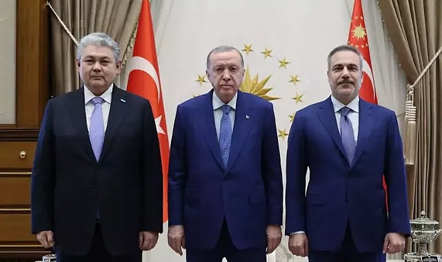 Cumhurbaşkanı Erdoğan, Kazakistan Dışişleri Bakanı Yermek Koşerbayev'i Cumhurbaşkanlığı Külliyesi'nde kabul etti. Kabulde Dışişleri Bakanı Hakan Fidan da yer aldı.