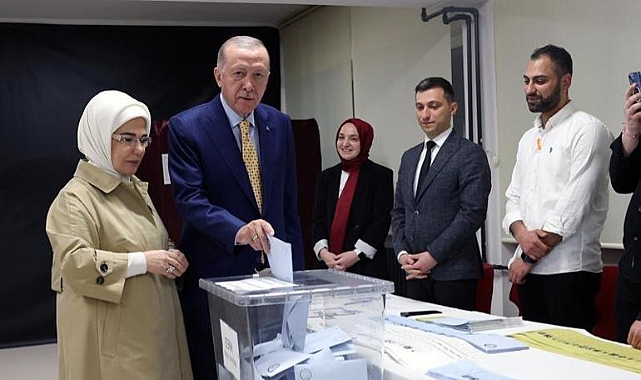 Cumhurbaşkanı Recep Tayyip Erdoğan ve eşi Emine Erdoğan, Üsküdar Kısıklı'daki konutundan çıkarak Cumhurbaşkanlığı Mahalli İdareler Yerel Seçimleri için oyunu kullanacağı Saffet Çebi Ortaokulu'na saat 13.15 sıralarında geldi. Cumhurbaşkanı Erdoğan'ı burada Cumhurbaşkanlığı İletişim Başkanı Fahrettin Altun, AK Parti İstanbul İl Başkanı Osman Nuri Kabaktepe ve Üsküdar Belediye Başkanı Hilmi Türkmen karşıladı.Oy kullanacağı sınıfa giren Cumhurbaşkanı Erdoğan, sandık görevlileriyle tek tek tokalaştı. Pusula ve mührü alan Cumhurbaşkanı Erdoğan kabine girerek oyunu kullanırken, eşi Emine Erdoğan da oyunu kullandı. Cumhurbaşkanı Erdoğan ve eşi Emine Erdoğan 3308 numaralı sandıkta oy kullandı. Kabinden ilk olarak Emine Erdoğan çıktı, ardından Cumhurbaşkanı Erdoğan kabinden çıkarak birlikte sandığa zarfı attı. Cumhurbaşkanı Erdoğan imza işleminin ardından Cumhurbaşkanı Erdoğan açıklamalarda bulundu. Cumhurbaşkanı Erdoğan, “Her şeyden önce kısa bir süre önce malum milletvekili seçimi ve cumhurbaşkanlığı seçimlerini icra ettik.Şimdi de tabii yerel yönetimler seçimini icra ediyoruz bugün. Gerçekten arka arkaya bu kadar kısa bir süreyle bu iki seçim milletimizi yordu. Bizleri de yordu. Çünkü çok yoğun bir kampanya geçirdik. Bu kampanyadan sonra da bugün bu seçimleri icra etmek suretiyle yerel yönetimlerde inşallah ülkemiz, milletimiz için hayırlı bir netice çıkar diye düşünüyorum.Bu seçim ülkemizde birbirine yakın süreçte yeni bir dönemin başlangıcına vesile olacak. Bir taraftan milletvekili ve cumhurbaşkanlığı seçimi, diğer taraftan yerel yönetim seçimleri bunların ülkemizde inşallah yeni bir dönemin, yeni yüzyılın başlangıcına vesile olmasını diliyorum. Milletimize gösterdiği bu sadakat içinde şahsım ve tüm partili arkadaşlarım olarak teşekkür ediyorum.Bu vesileyle bütün sandık kurulu mensubu arkadaşlarıma da çok teşekkür ederim" dedi. Oy kullanma işleminin ardından okul bahçesinde bekleyen vatandaşlar Cumhurbaşkanı Erdoğan'a yoğun ilgi gösterdi. Cumhurbaşkanı Erdoğan'a okul önünde bekleyen bir engelli vatandaş hediye takdim etti. Cumhurbaşkanı Erdoğan'ın oy kullandığı sandıkta 346 seçmenin olduğu öğrenildi.