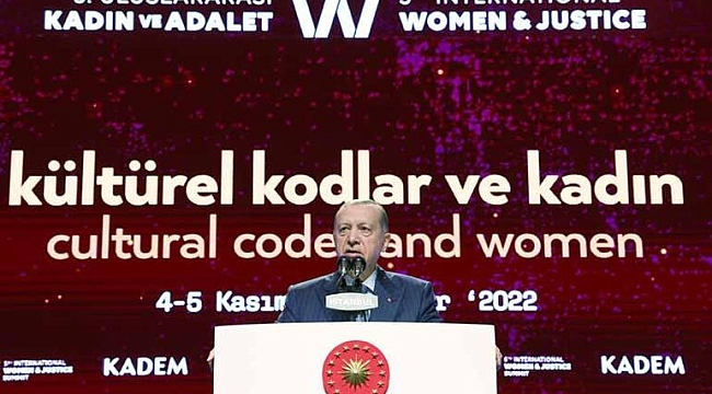 "Anayasamızdan başlayarak, mevzuatımızın tamamını bu doğrultuda yenilerken asıl büyük değişimi zihinlerde sağladığımıza inanıyorum" diyen Erdoğan, kadın politikalarının sağlam zemine oturmasını sağlayan çalışmalardan bazılarını hatırlattı.