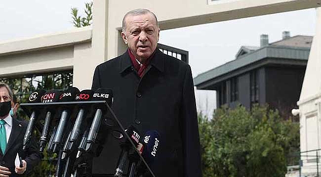 "EV SAHİPLİĞİ YAPABİLECEĞİMİZİ KENDİLERİNE İFADE ETTİK"Cumhurbaşkanı Erdoğan dün Ukrayna Devlet Başkanı Volodimir Zelenski ile telefon görüşmesi gerçekleştirdiklerini belirterek , "Bugün de saat dört gibi sayın Putin ile görüşmemiz olacak. Her iki liderle de yapacağımız bu görüşmelerde önce alt yapıda ön görüşmeler neticesinde varılan bir mutabakat... Bunun getirisini artık liderler bazında özellikle Kırım ve Donbas noktasında bir adım atılması için bu en üst düzeyde sayın liderle görüşmenin ve bu konuya da ev sahipliği yapabileceğimizi kendilerine ifade ettik. Sayın Zelenski'nin olumlu bakışı var. Sayın Putin'in de daha önce bir olumlu yaklaşımı söz konusuydu. Temenni ederim ki bugün yapacağımız bu görüşme ile yani tarih olarak ne zaman olabilir onu onlar belirleyecek. Buna göre de İstanbulumuzda böyle bir liderler zirvesini gerçekleştirebilir ve bunun neticesinde inşallah bu olumsuz gidişi olumlu bir hale dönüştürmenin kararını iki liderle gerçekleştirebilirsek bizler de tabi Türkiye olarak bundan büyük bir mutluluk duyacağız" diye konuştu. "BİR SIKINTI SÖZ KONUSU DEĞİL"İstanbul Boğazı'ında görülen deniz mayınlarına ilişkin ise Erdoğan , "Bunlar imha edildi. Bu konuyla ilgili olarak özellikle Deniz Kuvvetleri'miz ciddi bir çalışmanın, takibin gayreti içerisinde. Şu an için bir sıkıntı söz konusu değil. Bundan sonraki sürece yönelik de başta Savunma Bakanım olmak üzere Deniz Kuvvetleri tüm imkanlarıyla bu süreci takip ediyorlar. Sıkıntı yok ama tedbiri elden bırakmayacağız" ifadelerini kullandı. Erdoğan'a cuma namazında İstanbul Valisi Ali Yerlikaya ve Cumhurbaşkanlığı İletişim Başkanı Fahrettin Altun eşlik etti.