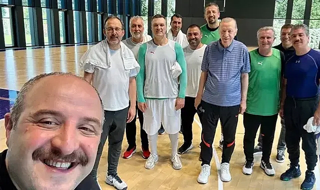 Cumhurbaşkanı Recep Tayyip Erdoğan, çalışma arkadaşlarıyla basketbol oynadı. Meclis Sanayi, Ticaret, Enerji, Tabii Kaynaklar, Bilgi ve Teknoloji Komisyonu Başkanı Mustafa Varank, sosyal medya hesabından 'Maç sonrası özçekim' başlıklı fotoğraf paylaştı.AK Parti'li Mustafa Varank, sosyal medya hesabından 'Maç sonrası özçekim' mesajı ile Cumhurbaşkanı Recep Tayyip Erdoğan ile basketbol oynadıkları fotoğraf paylaştı. Cumhurbaşkanlığı Külliyesi'ndeki basketbol maçından sonra çekilen fotoğrafta Cumhurbaşkanı Erdoğan'ın, siyah eşofman altı ve tişörtünün yanı sıra beyaz ayakkabı giydiği görüldü. Cumhurbaşkanı Erdoğan'a, Çalışma ve Sosyal Güvenlik Bakanı Vedat Işıkhan, Gençlik ve Spor Bakanı Osman Aşkın Bak, Bakan Yardımcısı Hamza Yerlikaya, Meclis Sanayi Komisyonu Başkanı Mustafa Varank, AK Parti İzmir milletvekilleri Mehmet Muharrem Kasapoğlu ve Alpay Özalan ile Basketbol Federasyonu Başkanı Hidayet Türkoğlu eşlik etti. Skorborda göre; yeşil takımın beyaz takımı 80-34 yendiği görüldü. Varank, daha önce de Cumhurbaşkanı Erdoğan ile oynadıkları basketbol maçlarına ait görüntüleri sosyal medya hesabından paylaşmıştı. Spora ilgisiyle bilinen Erdoğan'ın düzenli aralıklarla basketbol maçlarına katıldığı öğrenildi.