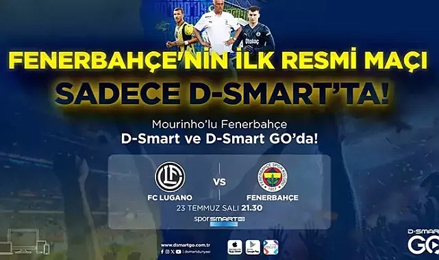 Jose Mourinho yönetimindeki Fenerbahçe, Şampiyonlar Ligi 2’nci Ön Eleme Turu ilk maçında İsviçre’nin Lugano takımına konuk olacak. 23 Temmuz Salı saat 21.30’da oynanacak karşılaşma, D-Smart ve D-Smart GO’dan canlı olarak yayınlanacak.