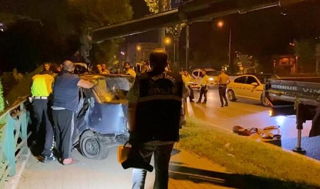 Bursa’da aşırı hız nedeniyle kontrolden çıkan otomobil önce kaldırıma çarptı ardından da yol kenarındaki demir korkulukları parçalayarak inşaat alanına düştü. Kazada otomobilde sıkışan Serdar Sezgin (20) hayatını kaybederken, sürücü Oktay Bora (21) ve Onur Karaorman ağır yaralandı.