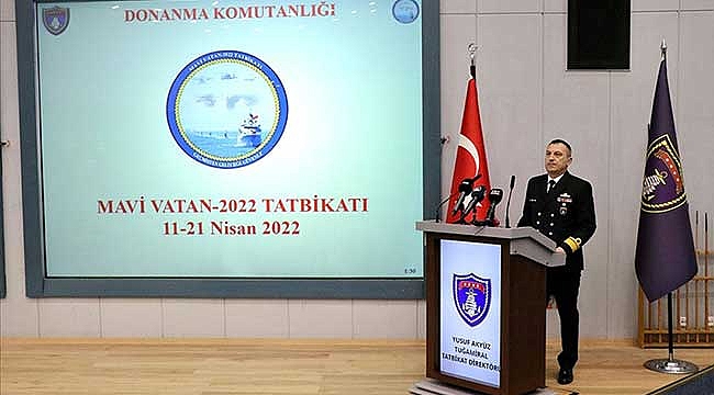 Kocaeli'nin Gölcük ilçesinde bulunan Donanma Komutanlığına bağlı Deniz Harp Merkezi Komutanlığında düzenlenen basın toplantısında, 21 Nisan'a kadar Karadeniz, Ege Denizi ve Doğu Akdeniz'de gerçekleştirilecek Mavi Vatan-2022 Tatbikatı ile ilgili bilgi verildi.Tatbikat Direktörü ve Donanma Harekat Başkanı Tuğamiral Yusuf Akyüz, basın toplantısında, tatbikatın Genelkurmay Başkanlığı Türk Silahlı Kuvvetleri