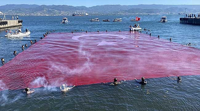 Denizcilik ve Kabotaj Bayramı etkinlikleri kapsamında İzmit Körfezi'ne giren 62 dalgıç, 600 metrekare büyüklüğünde dev Türk bayrağı açarak, Türkiye'de denizde açılmış en büyük bayrak rekorunu kırdı.