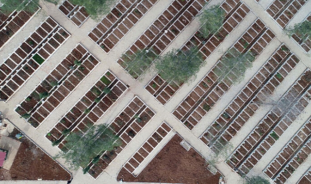 Pazartesi günü meydana gelen 7.7 ve 7.6 büyüklüklerindeki depremlerle sarsılan Kahramanmaraş’ta, çöken binaların altında kalan 5 bini aşkın kişi yaşamını yitirdi. Enkazda arama-kurtarma çalışmalarının devam ettiği kentte, hayatını kaybedenler ise kimlik tespiti ve teşhis işlemlerinin ardından Kapıçam Mezarlığı’nda yıkanıp, kefenlenerek, namazları kılındıktan sonra yan yana kazılan mezarlarda toprağa veriliyor. Bugüne kadar 3 bin civarında deprem kurbanı, iş makineleriyle kazılan mezarlara defnediliyor. 6 Şubat günü saat 04.17’de merkez üssü Pazarcık ilçesi olan 7.7, aynı gün saat 13.24’te ise bu kez merkez üssü Elbistan ilçesi olan 7.6 büyüklüğünde iki deprem meydana geldi. Depremler, Kahramanmaraş’ın da aralarında olduğu 10 ilde hasara yol açtı. Depremlerde hayatını kaybedenlerin cenazeleri enkaz altından çıkarıldıktan sonra götürüldükleri morgda yapılan otopsi ve teşhis işlemi sonrası Kapıçam Mezarlığı’na götürülüyor. Burada da parmak izlerinin alınmasının ardından cenazeler, din görevlilerince yıkama, kefenleme ve cenaze işlemi sonrası toprağa veriliyor. YAN YANA BİNLERCE MEZAR, 24 SAAT DEFİNDepremde çöken binaların enkazında arama- kurtarma çalışmalarının halen sürdüğü Kahramanmaraş’ta hayatını kaybeden kişiler için Kapıçam Mezarlığı’nda iş makineleriyle yan yana binlerce mezar açıldı. Mezarlara, işlemi tamamlanan deprem kurbanlarının cenazeleri 24 saat boyunca defnediliyor. Şu ana kadar 3 bini aşkın kişinin defnedildiği Kapıçam Mezarlığı’nda halen bir yandan iş makineleri ile yeni mezarlar kazılıyor, bir yandan da defin işlemleri sürüyor. Havadan da dron ile görüntülenen Kapıçam Mezarlığı’nda, görevlilerin hummalı çalışmaları devam ediyor.MÜFTÜ TEKİN: VEFAT EDENLERE SON GÖREVLERİMİZİ YAPIYORUZKahramanmaraş İl Müftüsü Mustafa Tekin, depremde hayatını kaybedenlerin İslami usullere uygun şekilde defnedildiğini söyledi. Diyanet İşleri Başkanlığı’nın depremin ardından kente 20 il müftüsü ve 300 civarında personel gönderdiğini söyleyen Tekin, “Depremde bizim ihmal etmememiz gereken görevlerimizden birisi vefat edenlere son vazifeyi yapmak. Şu anda mezarlıkta birikim var ama böylesi bir kriz ortamında bu kişilere vecibemizi en güzel şekilde eksiksiz şekilde yapmaya çalışıyoruz. Depremde hayatını kaybedenler için Kapıçam Mezarlığı’nda ekiplerimiz var, 24 saat vardiyalı şekilde orada gece gündüz bulunuyorlar. Düzenli şekilde kardeşlerimize son görevimizi yapıyoruz. Hayatını kaybedenlerin yıkama, kefenleme, cenaze namazı gibi tüm işlemlerini yapıyoruz. Yoğunluk yaşanmaması için işlemleri tamamlananları hızlıca defnediyoruz” dedi.Müftü İsmail Tekin, Diyanet İşleri Başkanlığı personellerinin cenaze hizmetlerinin yanı sıra arama-kurtarma çalışmalarını sürdüren ekiplere de destek olduğunu sözlerine ekledi.