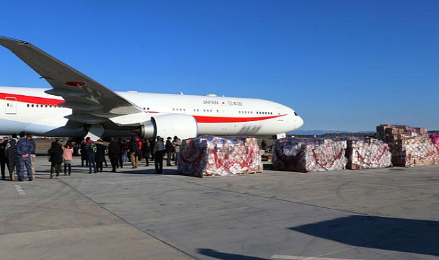Depremzedeler için 15 ton tıbbi ekipman taşıyan Japon uçağı Adana'ya iniş yaptı