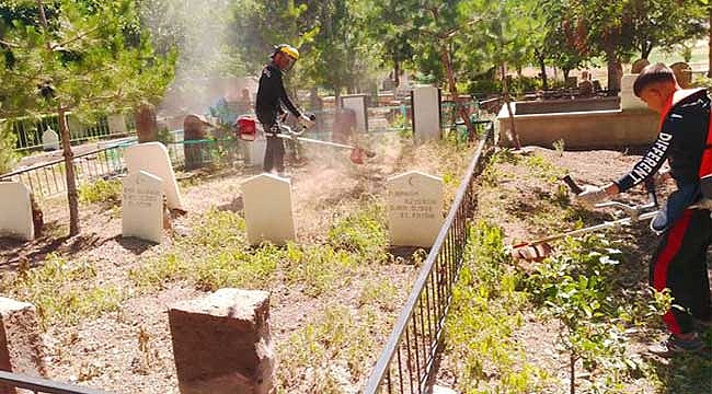 Develi Belediyesi'ne bağlı ekipler tarafından yaklaşan Kurban Bayamı öncesi mezarlıklarda temizlik ve bakım çalışması yapıldı.